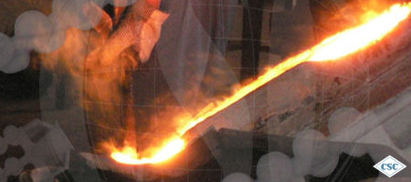電気炉でドロドロに溶かした金属を鋳型に流し込みます。